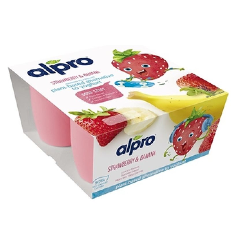 соевая основа (вода, очищенные соевые бобы (9,7%)), сахар, клубника (6,6%), банан (2,4%), кальций (трикальцитрат), стабилизатор (пектины), натуральные ароматизаторы, экстракт моркови, регуляторы кислотности (лимонная кислота, цитраты натрия), морская соль, антиоксиданты (экстракты, богатые токоферолами, эфиры аскорбиновой кислоты и жирных кислот), витамины (B2, B12, C, D2), йогуртовые культуры (S. thermophilus, L. bulgaricus). Не содержат орехов (без орехов). Не содержит молочных продуктов и глютена.