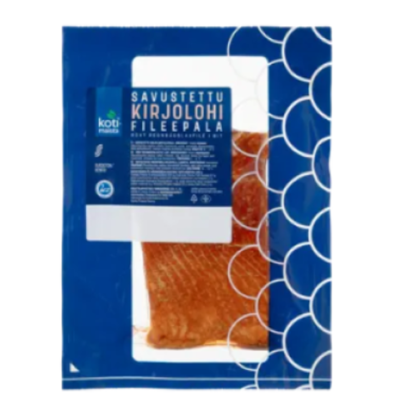 | Вид | Копченое филе радужной форели Kotimaista savustettu kirjolohifileepala около 250 г |