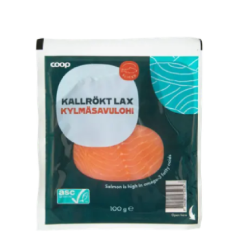 | Вид | Ломтики лосося холодного копчения Coop Kylmäsavulohiviipaleet ASC 100 г |