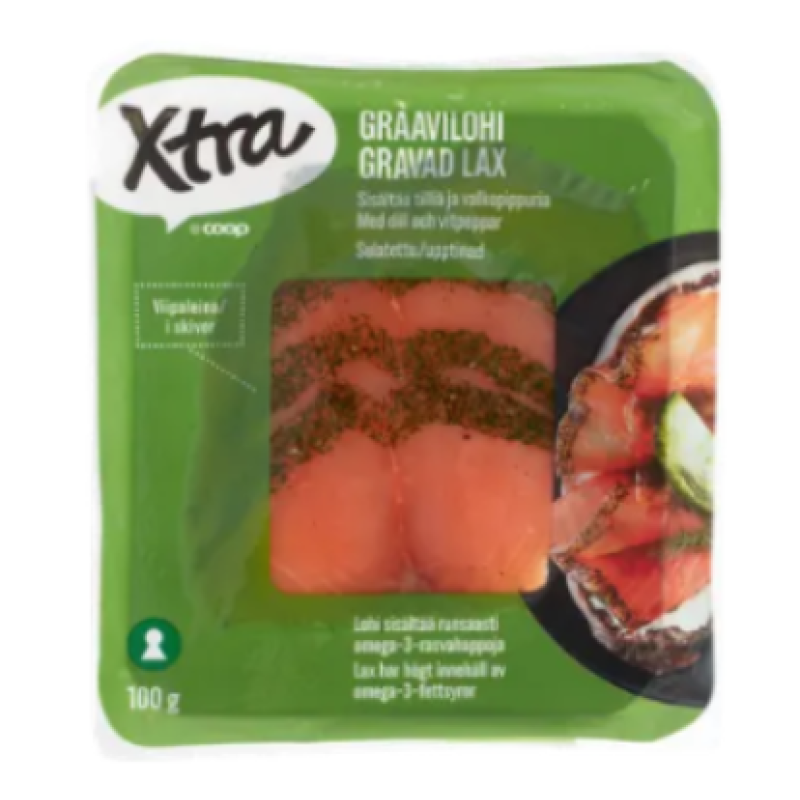 | Вид | Филе лосося слабой соли с укропом и белым перцем Xtra graavilohiviipaleet 100 г |