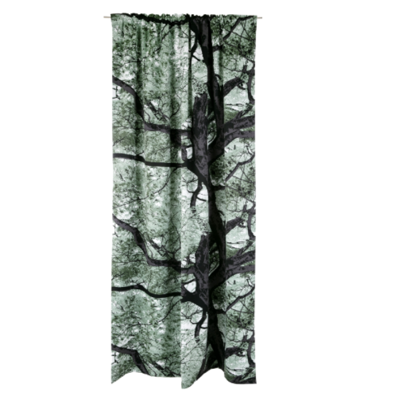 Размер плотной шторы — 140 х 250 см. Материал — красиво драпирующийся, изготовлен из 100% переработанного полиэстера.